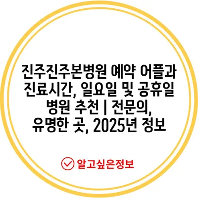 ✅ 진주진주본병원의 진료시간과 예약 방법을 모두 알아보세요.