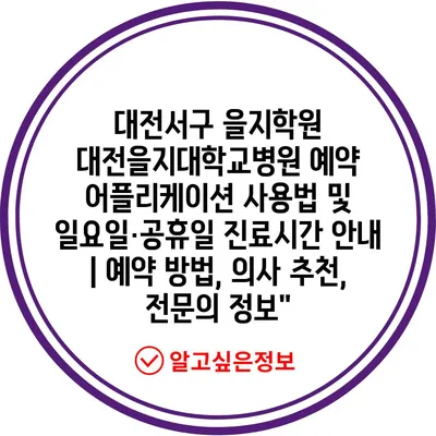 ✅ 대전서구 을지학원 진료 예약 방법을 지금 확인해 보세요.