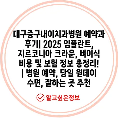 대구중구내이치과병원 예약과 후기| 2025 임플란트, 지르코니아 크라운, 뼈이식 비용 및 보험 정보 총정리! | 병원 예약, 당일 원데이 수면, 잘하는 곳 추천