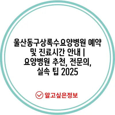 울산동구상록수요양병원 예약 및 진료시간 안내 | 요양병원 추천, 전문의, 실속 팁 2025
