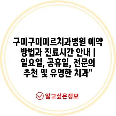✅ 구미구미미르치과병원 예약 방법과 진료시간을 쉽게 알아보세요!
