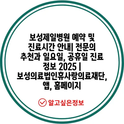 ✅ 보성제일병원의 진료시간과 예약 방법을 자세히 알아보세요.