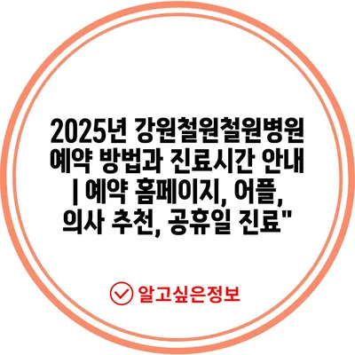 2025년 강원철원철원병원 예약 방법과 진료시간 공지 | 예약 홈페이지, 어플, 의사 추천, 공휴일 진료에 대해 자주 묻는 질문 TOP 5