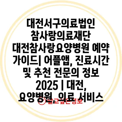 대전서구의료법인 참사랑의료재단 대전참사랑요양병원 예약 가이드| 어플앱, 진료시간 및 추천 전문의 정보 2025 | 대전, 요양병원, 의료 서비스