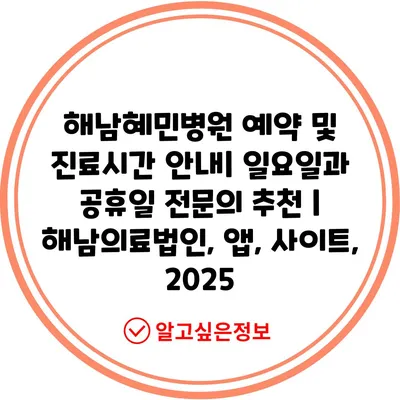 해남혜민병원 예약 및 진료시간 공지| 일요일과 공휴일 전연락 추천 | 해남의료법인, 앱, 사이트, 2025 에 대해 자주 묻는 질문 TOP 5