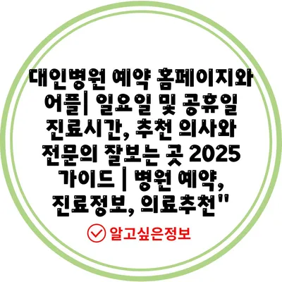 대인병원 예약 홈페이지와 어플| 일요일 및 공휴일 진료시간, 추천 의사와 전연락 잘보는 곳 2025 설명서 | 병원 예약, 진료정보, 의료추천”에 대해 자주 묻는 질문 TOP 5
