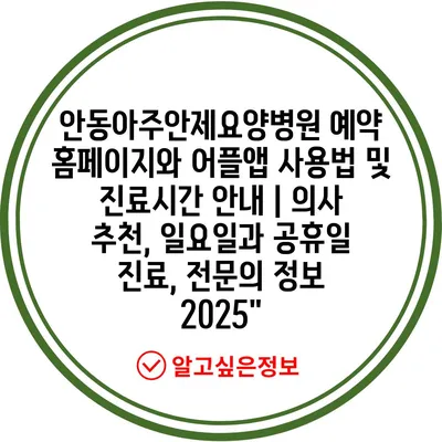 안동아주안제요양병원 예약 홈페이지와 어플앱 사용법 및 진료시간 안내 | 의사 추천, 일요일과 공휴일 진료, 전문의 정보 2025″