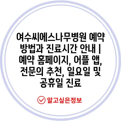✅ 여수씨에스나무병원의 예약 방법과 진료시간을 알아보세요!