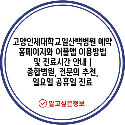 ✅ 고양인제대학교일산백병원의 진료시간 및 예약 방법을 알아보세요.