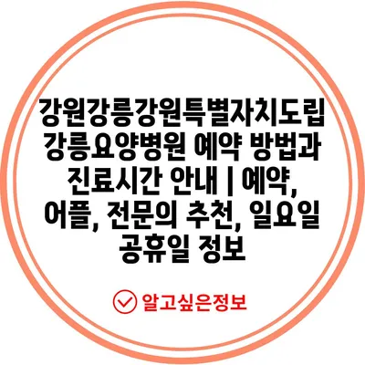 ✅ 강릉요양병원의 예약 방법과 팁을 알아보세요.
