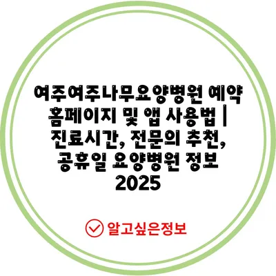 여주여주나무요양병원 예약 홈페이지 및 앱 사용법 | 진료시간, 전연락 추천, 공휴일 요양병원 정보 2025에 대해 알아보겠습니다.