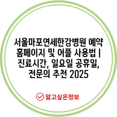 서울마포연세한강병원 예약 홈페이지 및 어플 사용법 | 진료시간, 일요일 공휴일, 전문의 추천 2025