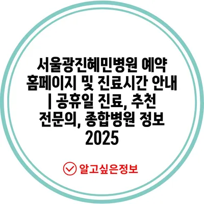 서울광진혜민병원 예약 홈페이지 및 진료시간 공지 | 공휴일 진료, 추천 전연락, 종합병원 정보 2025