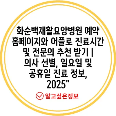 화순백재활요양병원 예약 홈페이지와 어플로 진료시간 및 전문의 추천 받기 | 의사 선별, 일요일 및 공휴일 진료 정보, 2025″