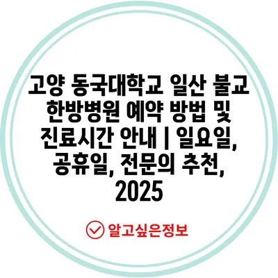 고양 동국대학교 일산 불교 한방병원 예약 방법 및 진료시간 공지 | 일요일, 공휴일, 전연락 추천, 2025