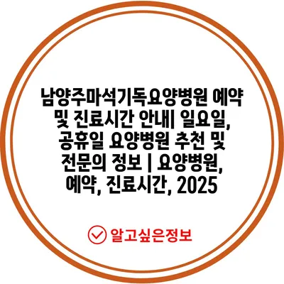 남양주마석기독요양병원 예약 및 진료시간 공지| 일요일, 공휴일 요양병원 추천 및 전연락 정보 | 요양병원, 예약, 진료시간, 2025 에 대해 자주 묻는 질문 TOP 5
