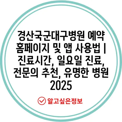 ✅ 경산국군대구병원 예약 방법과 팁을 지금 바로 알아보세요!