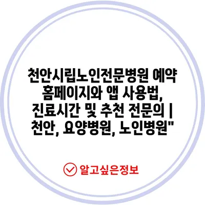 ✅ 천안시립노인전문병원의 예약 방법과 앱 사용법을 자세히 알아보세요.