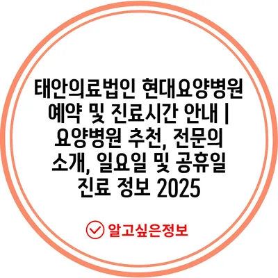 태안의료법인 현대요양병원 예약 및 진료시간 공지 | 요양병원 추천, 전연락 소개, 일요일 및 공휴일 진료 정보 2025