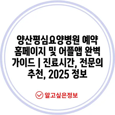 양산평심요양병원 예약 홈페이지 및 어플앱 완벽 설명서 | 진료시간, 전연락 추천, 2025 정보에 대한 글입니다.