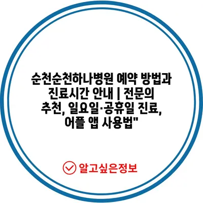 ✅ 순천하나병원 예약 방법과 진료시간을 쉽게 알아보세요!