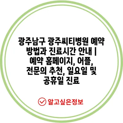 광주남구 광주씨티병원 예약 방법과 진료시간 공지 | 예약 홈페이지, 어플, 전연락 추천, 일요일 및 공휴일 진료에 대해 자주 묻는 질문 TOP 5