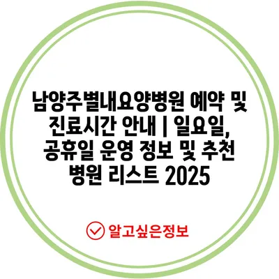 남양주별내요양병원 예약 및 진료시간 안내 | 일요일, 공휴일 운영 정보 및 추천 병원 리스트 2025