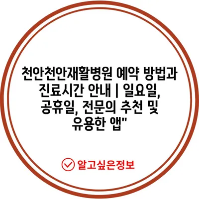 천안천안재활병원 예약 방법과 진료시간 공지 | 일요일, 공휴일, 전연락 추천 및 유용한 앱