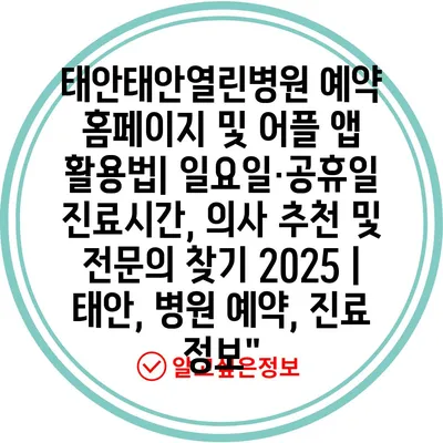 태안태안열린병원 예약 홈페이지 및 어플 앱 활용법| 일요일·공휴일 진료시간, 의사 추천 및 전연락 찾기 2025 | 태안, 병원 예약, 진료 정보