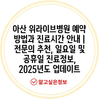 아산 위라이브병원 예약 방법과 진료시간 안내 | 전문의 추천, 일요일 및 공휴일 진료정보, 2025년도 업데이트