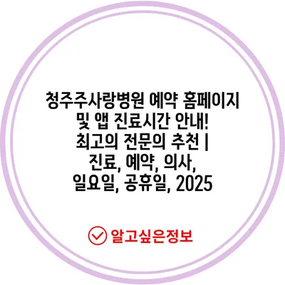 청주주사랑병원 예약 홈페이지 및 앱 진료시간 공지! 최고의 전연락 추천 | 진료, 예약, 의사, 일요일, 공휴일, 2025