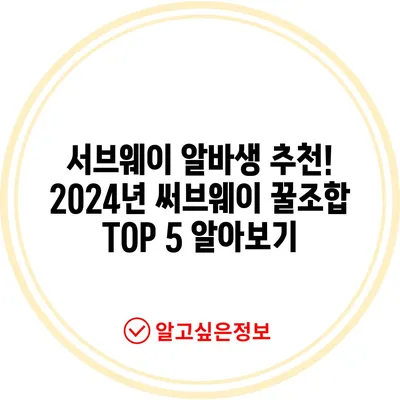 서브웨이 알바생 추천! 2024년 써브웨이 꿀조합 TOP 5 알아보기