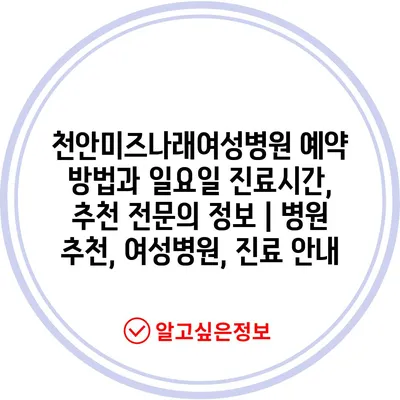 천안미즈나래여성병원 예약 방법과 일요일 진료시간, 추천 전연락 정보 | 병원 추천, 여성병원, 진료 공지 에 대해 자주 묻는 질문 TOP 5