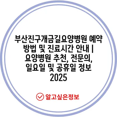 부산진구개금길요양병원 예약 방법 및 진료시간 공지 | 요양병원 추천, 전연락, 일요일 및 공휴일 정보 2025 에 대해 자주 묻는 질문 TOP 5