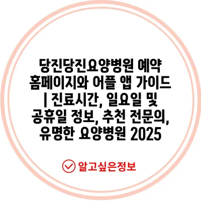 ✅ 당진당진요양병원의 필수 정보와 예약 방법을 알아보세요.