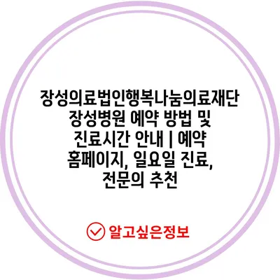장성의료법인행복나눔의료재단 장성병원 예약 방법 및 진료시간 안내 | 예약 홈페이지, 일요일 진료, 전문의 추천