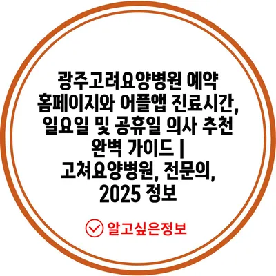 광주고려요양병원 예약 홈페이지와 어플앱 진료시간, 일요일 및 공휴일 의사 추천 완벽 설명서 | 고쳐요양병원, 전연락, 2025 정보 에 대해 자주 묻는 질문 TOP 5