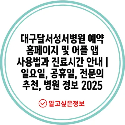 대구달서성서병원 예약 홈페이지 및 어플 앱 사용법과 진료시간 공지 | 일요일, 공휴일, 전연락 추천, 병원 정보 2025에 대해 알아보겠습니다.
