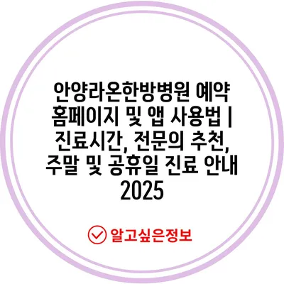 안양라온한방병원 예약 홈페이지 및 앱 사용법 | 진료시간, 전연락 추천, 주말 및 공휴일 진료 공지 2025