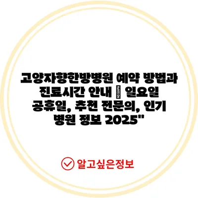 고양자향한방병원 예약 방법과 진료시간 공지 | 일요일 공휴일, 추천 전연락, 인기 병원 정보 2025″ 에 대해 자주 묻는 질문 TOP 5