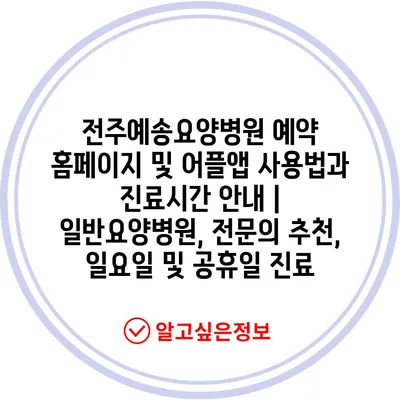 ✅ 전주예송요양병원의 진료시간과 예약 방법을 간편하게 확인해 보세요.