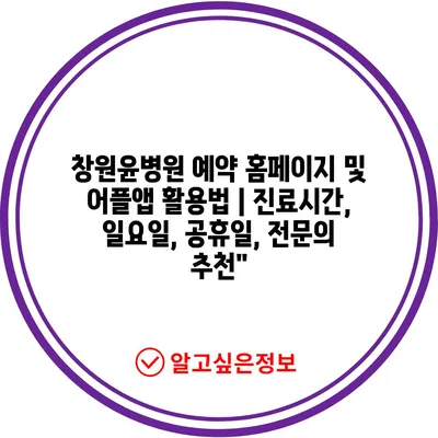 ✅ 창원윤병원 예약 방법과 진료시간을 쉽게 알아보세요!