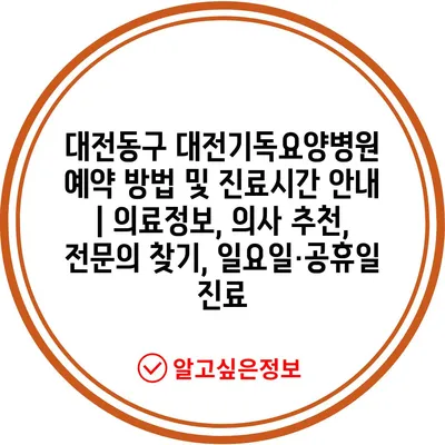 ✅ 대전기독요양병원의 예약 방법과 진료시간을 간편하게 알아보세요.