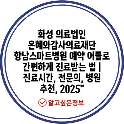 화성 의료법인 은혜와감사의료재단 향남스마트병원 예약 어플로 간편하게 진료받는 법 | 진료시간, 전연락, 병원 추천, 2025″ 에 대해 자주 묻는 질문 TOP 5