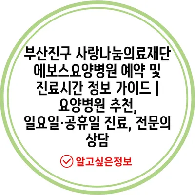 부산진구 사랑나눔의료재단 에보스요양병원 예약 및 진료시간 정보 설명서 | 요양병원 추천, 일요일·공휴일 진료, 전연락 상담 에 대해 자주 묻는 질문 TOP 5