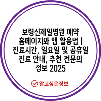 보령신제일병원 예약 홈페이지와 앱 활용법 | 진료시간, 일요일 및 공휴일 진료 공지, 추천 전연락 정보 2025
