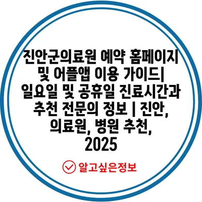 진안군의료원 예약 홈페이지 및 어플앱 이용 설명서| 일요일 및 공휴일 진료시간과 추천 전연락 정보 | 진안, 의료원, 병원 추천, 2025 에 대해 자주 묻는 질문 TOP 5