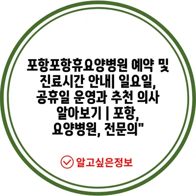 포항포항휴요양병원 예약 및 진료시간 안내| 일요일, 공휴일 운영과 추천 의사 알아보기 | 포항, 요양병원, 전문의”