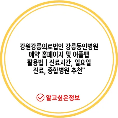 강원강릉의료법인 강릉동인병원 예약 홈페이지 및 어플앱 활용법 | 진료시간, 일요일 진료, 종합병원 추천에 대해 자주 묻는 질문 TOP 5