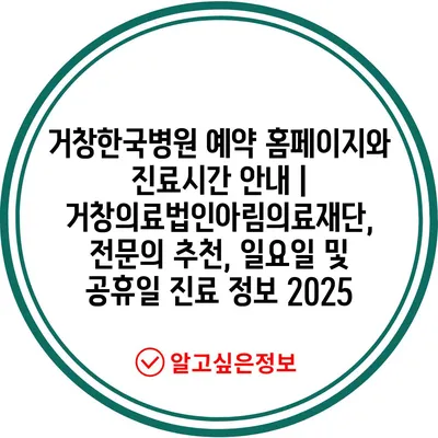 ✅ 거창한국병원의 진료시간과 예약 방법을 자세히 알아보세요.
